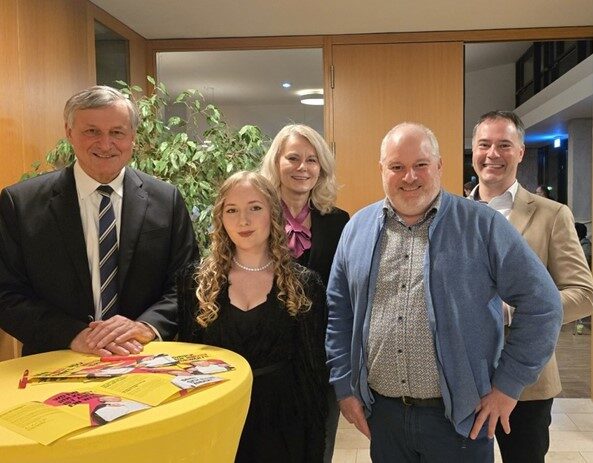 Hans-Ulrich Rülke mit den drei Direktkandidaten der Ortenauer Wahlkreise (von links): Ann Kathrin Stulz (Offenburg), Sanja Tömmes (Kehl) und Udo Zahn (Lahr), mit dem Kreisvorsitzenden der FDP Ortenau. Foto: Ralph Fautz